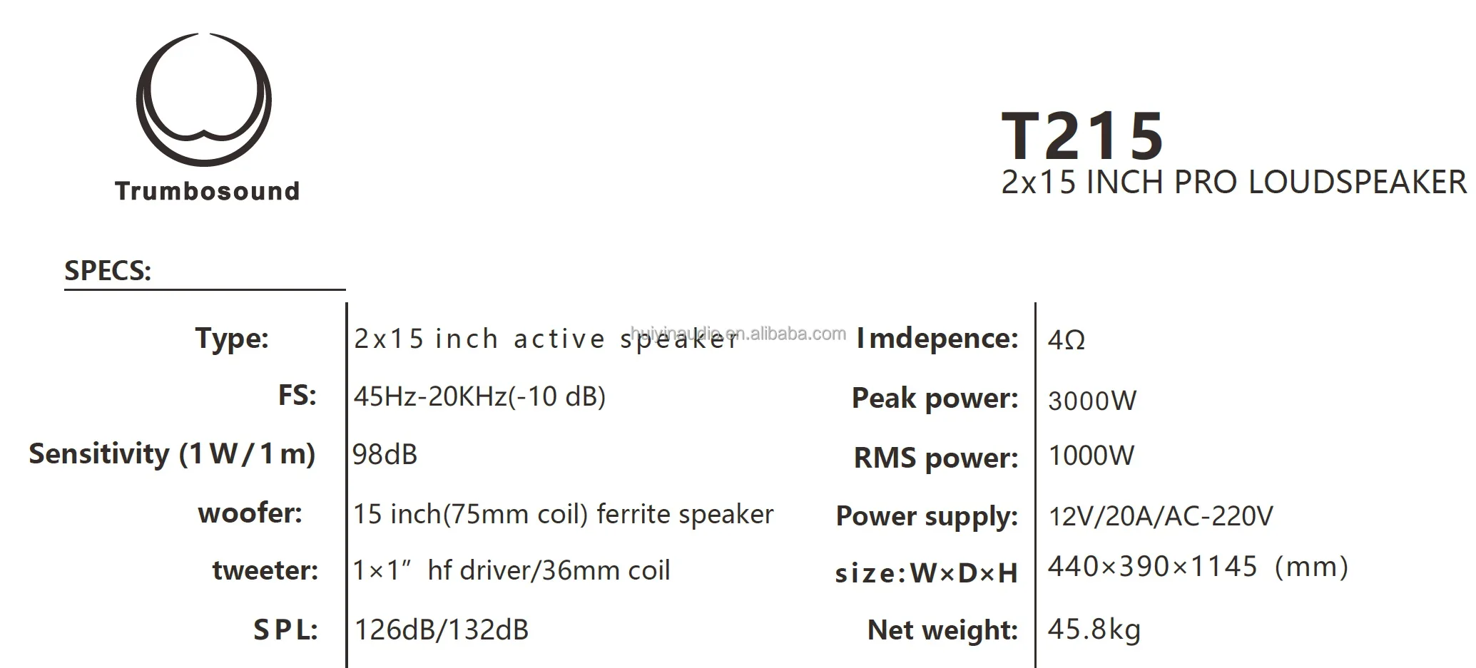 2 × مكبر صوت 15 بوصة (لفافة 75 مم) |