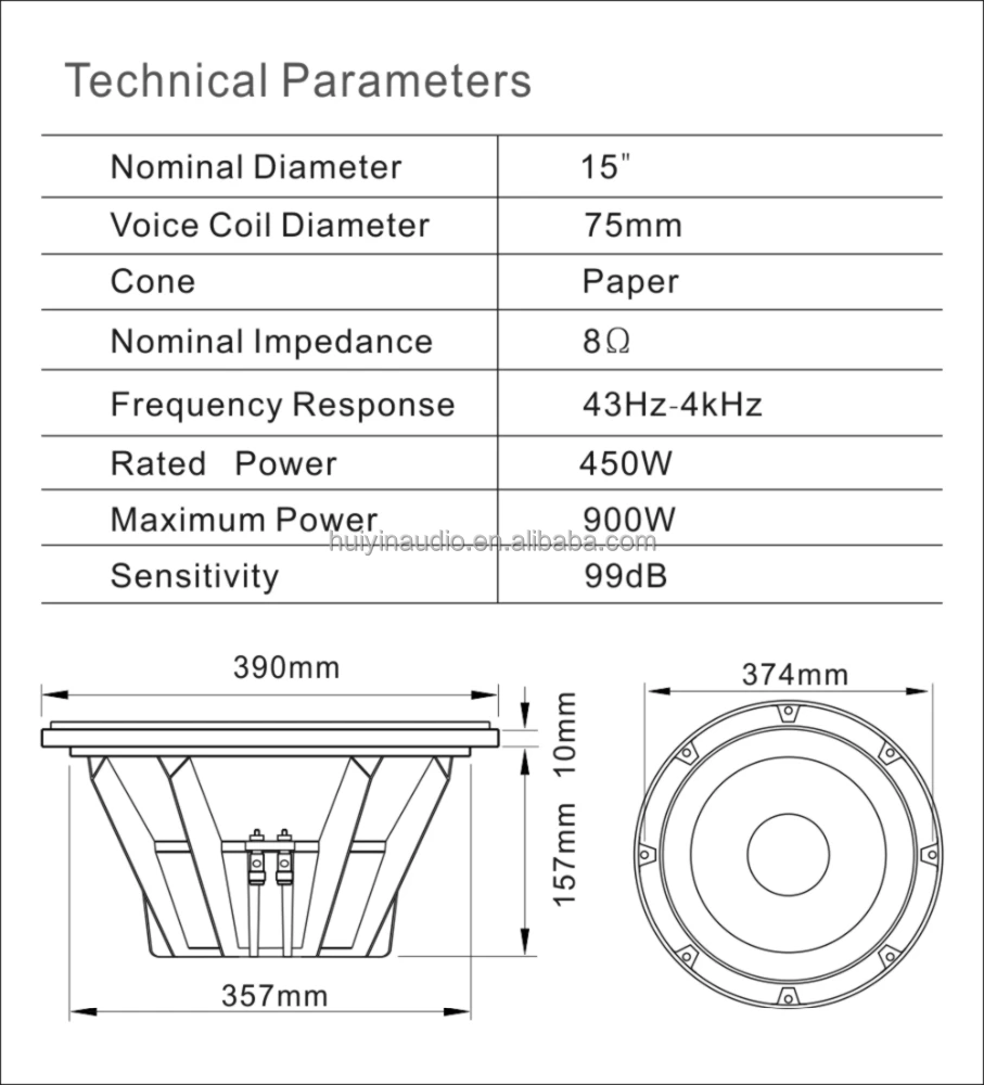 - 15 düym/38sm yüksək səviyyəli neodim woofer dinamik