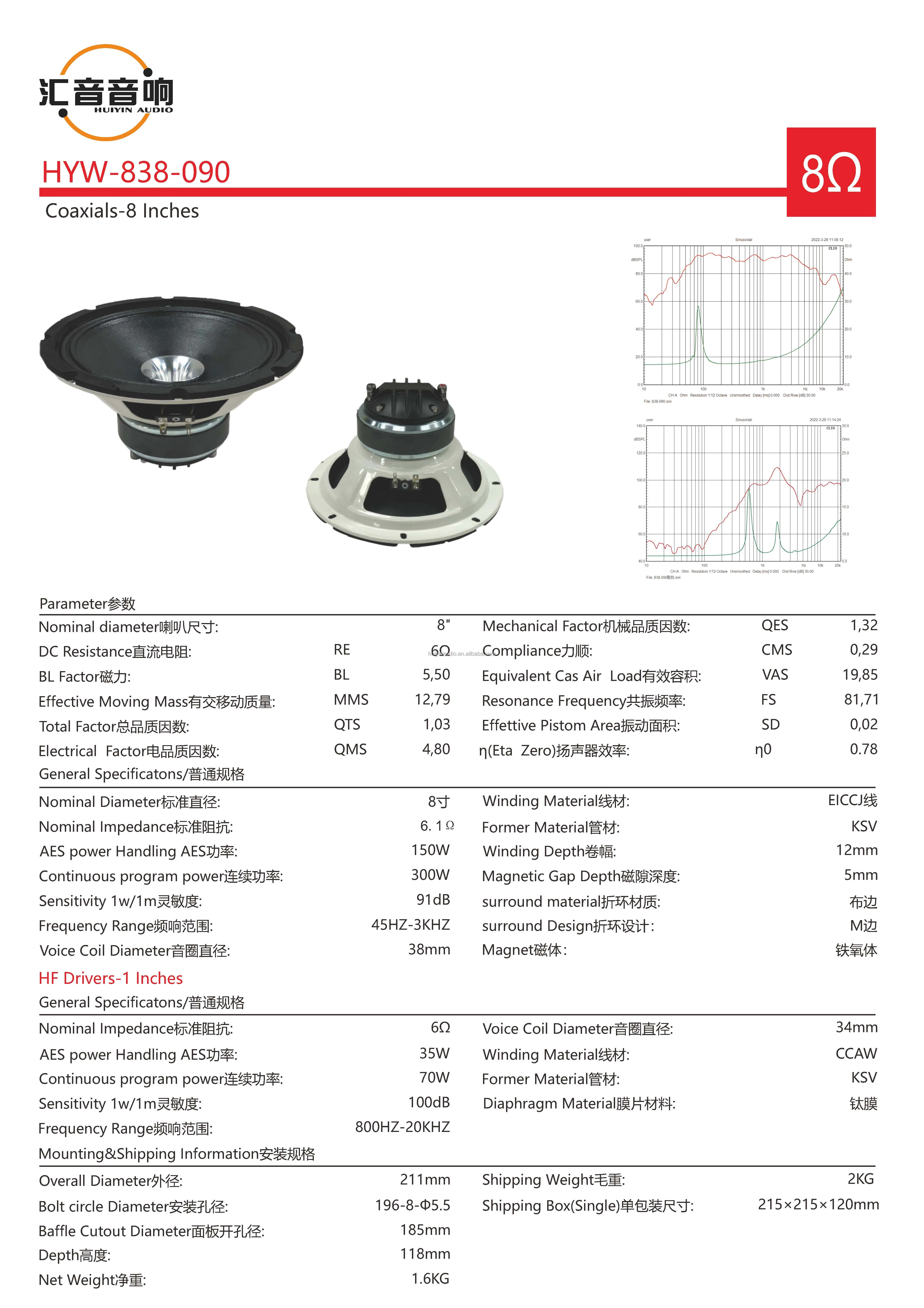 838-090 Ferrit 8 düym Avtomobil Kupik Dinamik 150 Vt RMS Dual Coil 24V Gərginlik 1 düym HF Driver Tam Diapazonlu Audio Səs Sistemi Avası