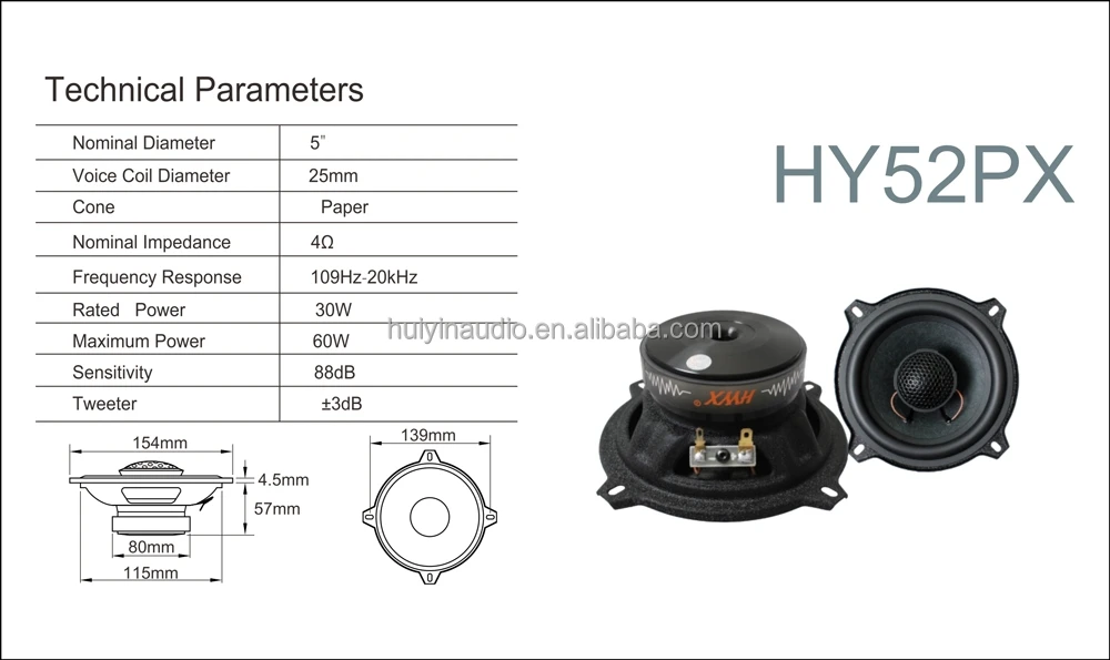Sənətli Avtomobil Audio Sistemini Yaxşılaşdırmaq üçün Passiv Tip HY52PX 5,25 düymlük Yüksək Keyfiyyətli Avtomobil Koaksial Dinamiki