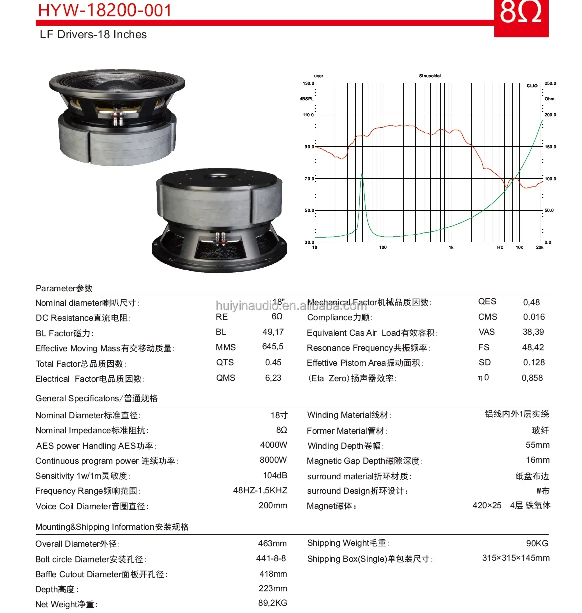 Филипинска конкуренция Професионално аудио 18-инчов субуфър 4000 Уат RMS 8-инчова звукова бобина 4x феритен магнит Видео осветление