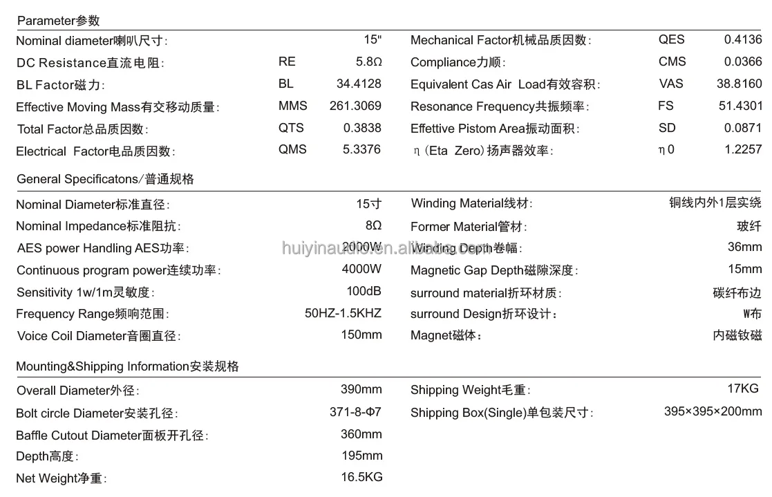 15150-010 Gailu Handiko 15 Hazkako Neo Imanzuzko Subwoofer Botohandia 4000 W Gehienez Profesionaleko Soinu Sistemak Line Array-erako