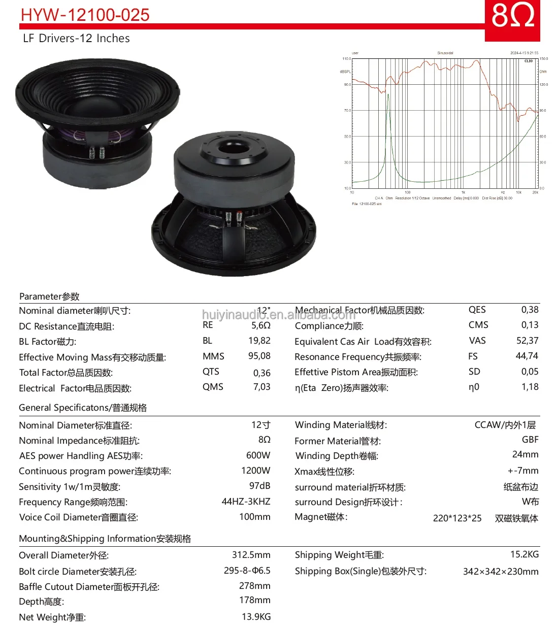 Bi Iman 12 Hazkadun Altzairuak Woofer 12100-025 600 W RMS 4 Hazkadun Bobina Audio Profesionala Indar Handiko Altzairua Line Array Altzairurako