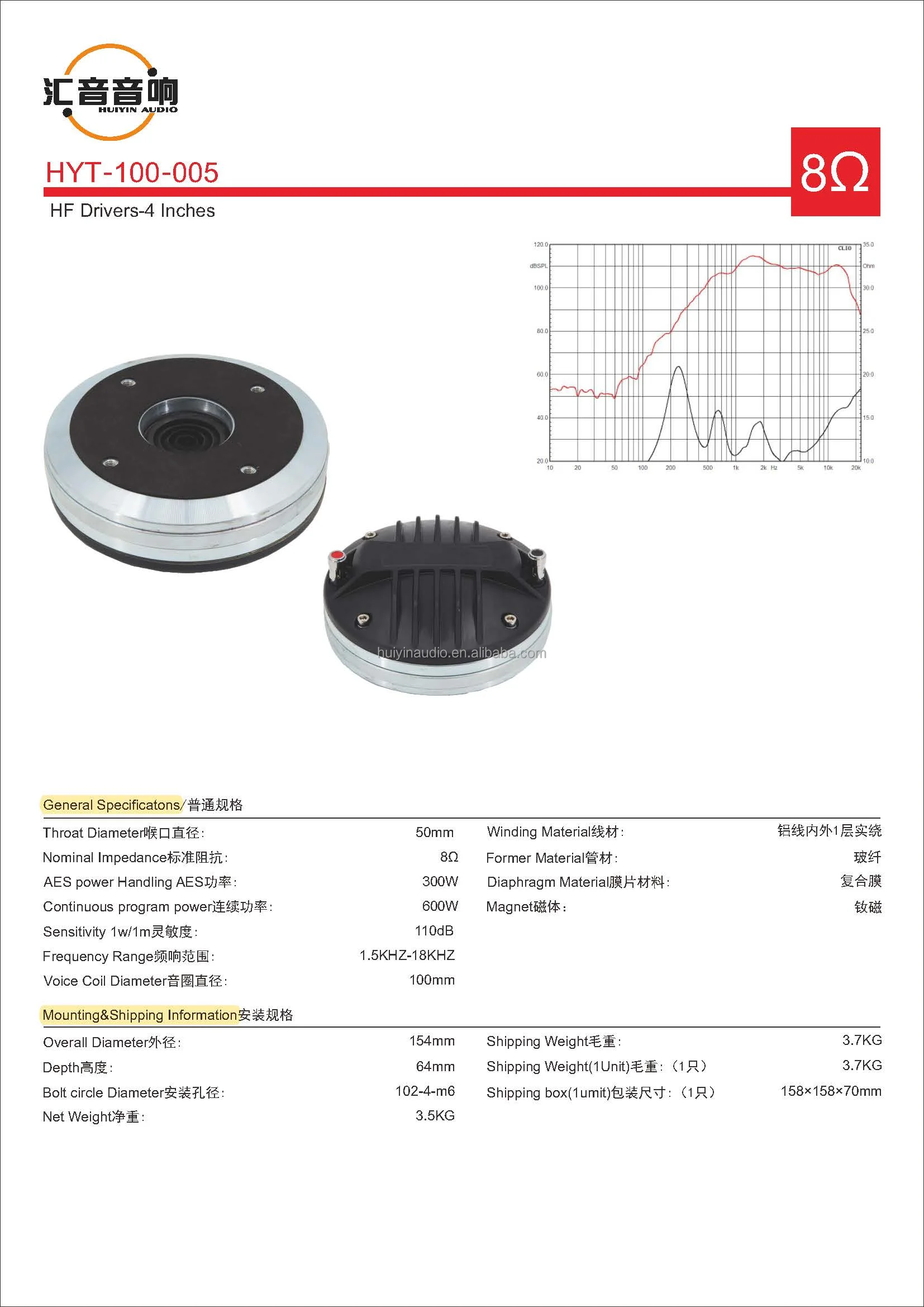300W RMS 4 Poll. HF Compressio Agens 2 Poll. Faucis Neodymium 110dB SPL 4 Poll. Vox Bobina Pergrandis Clamor HF Acutonorum HYT-100-005