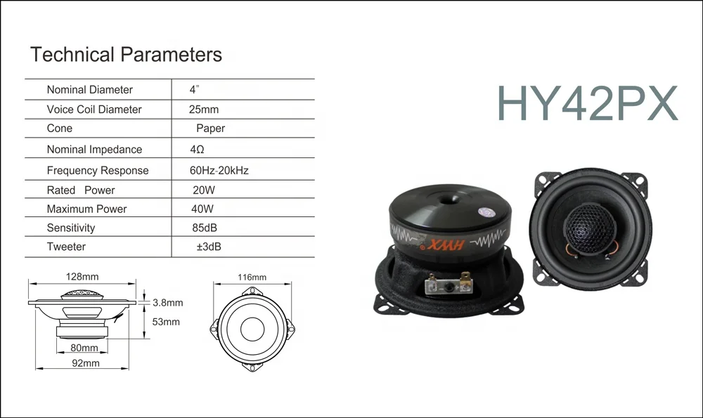 - ລຳໂພງຄອອກເຊຍນລົດ 2 ທາງຄຸນນະພາບ 4 ນິ້ວ ພ້ອມທວີເຕີ້ດ້ວຍເສັ້ນໃຍໄໝ