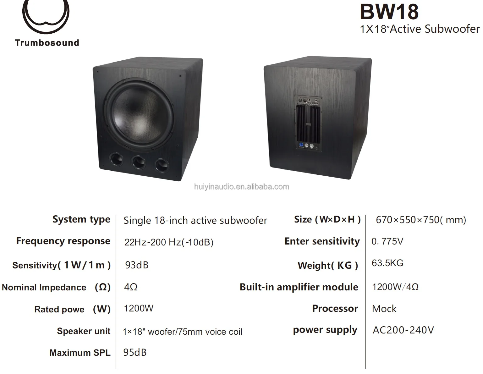 BW18 ລຳໂພງຊອບໂວີເຟີ 18 ນິ້ວມືອາຊີບ 1200W RMS ປືນລັບ ສຳລັບ DJ ຄຣັບ ໂຮງລະຄອນ ການແຂ່ງຂັນສຽງທຸ້ມ ພກໄດ້