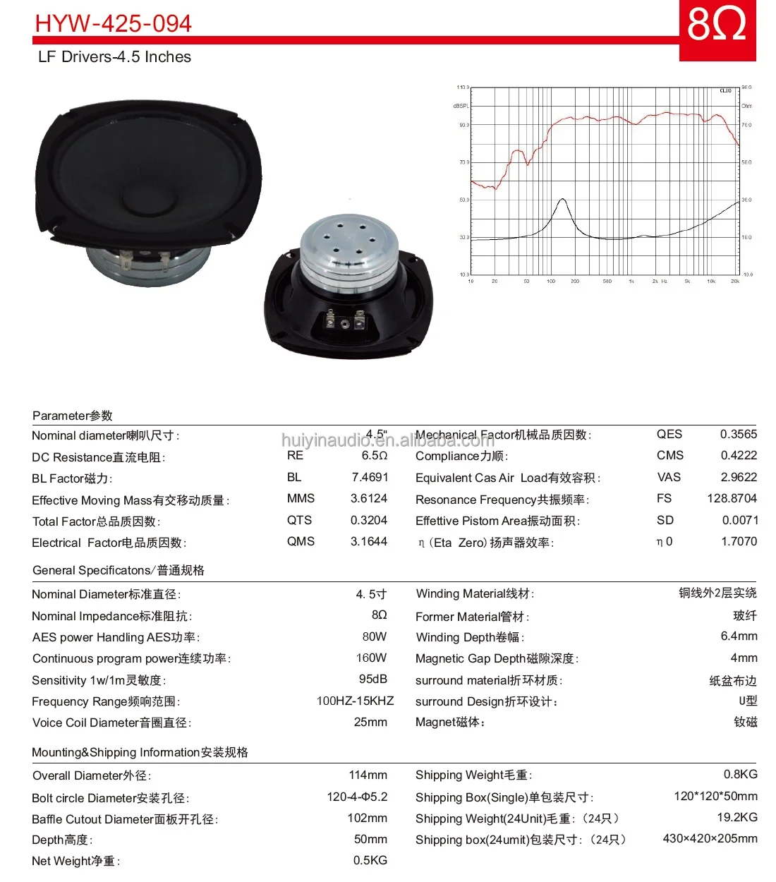 ४२५-०९४ प्रोफेशनल अडियो मिनी कलम लाउडस्पीकर ४.५ इन्च ८० डब्ल्यू आरएमएस नियोडिमियम मिड रेन्ज स्पीकर ८ ओम प्रतिबाधा सस्तो मूल्य