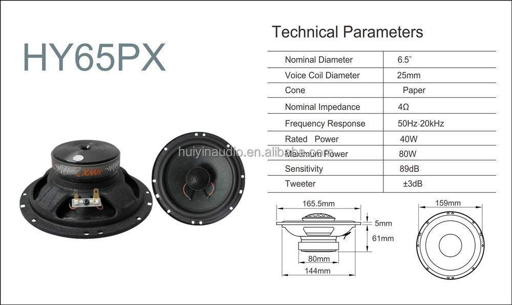 1. 6,5" 2-veis koaksialhøyttaler med 1" silke-dome diskant