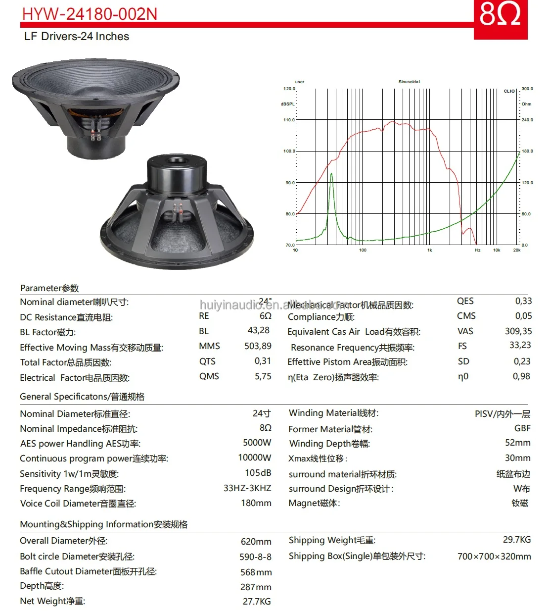 Big Power 5000W RMS 24 Inch Subwoofer 7Inch Coil Neodymium Woofer Speaker for Professional Line Array Sound System, 24180-002N