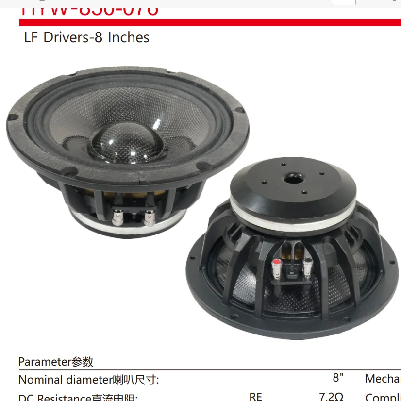 8\" Alto-falante Médio 850-076 com Cesta de Alumínio Reforçada e Sem Corneta Harmônica, Subwoofers Trifásicos
