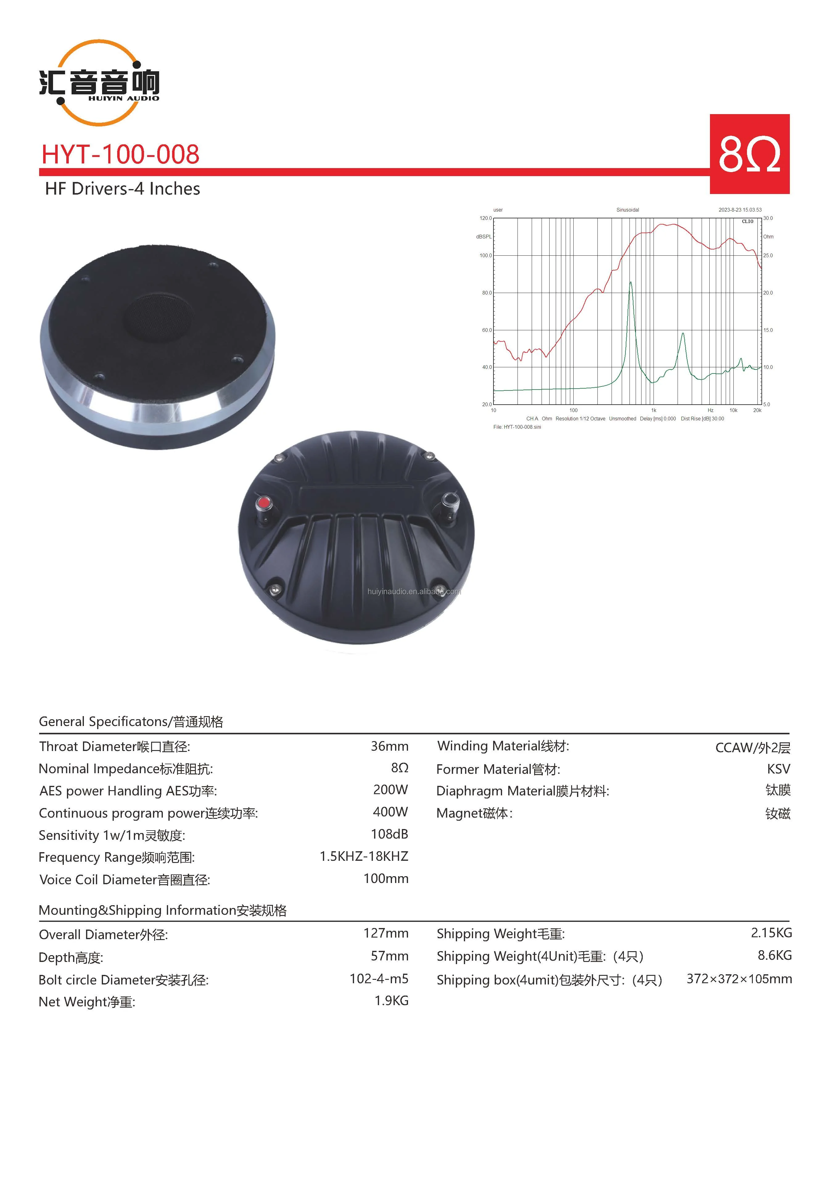 Neo 4 polegadas HF Drivers de Compressão 36 mm garganta 400 W máx 108 dB Tweeters de Áudio Teatro Rádio Telefone Sem Fio 4 polegadas Tweeter