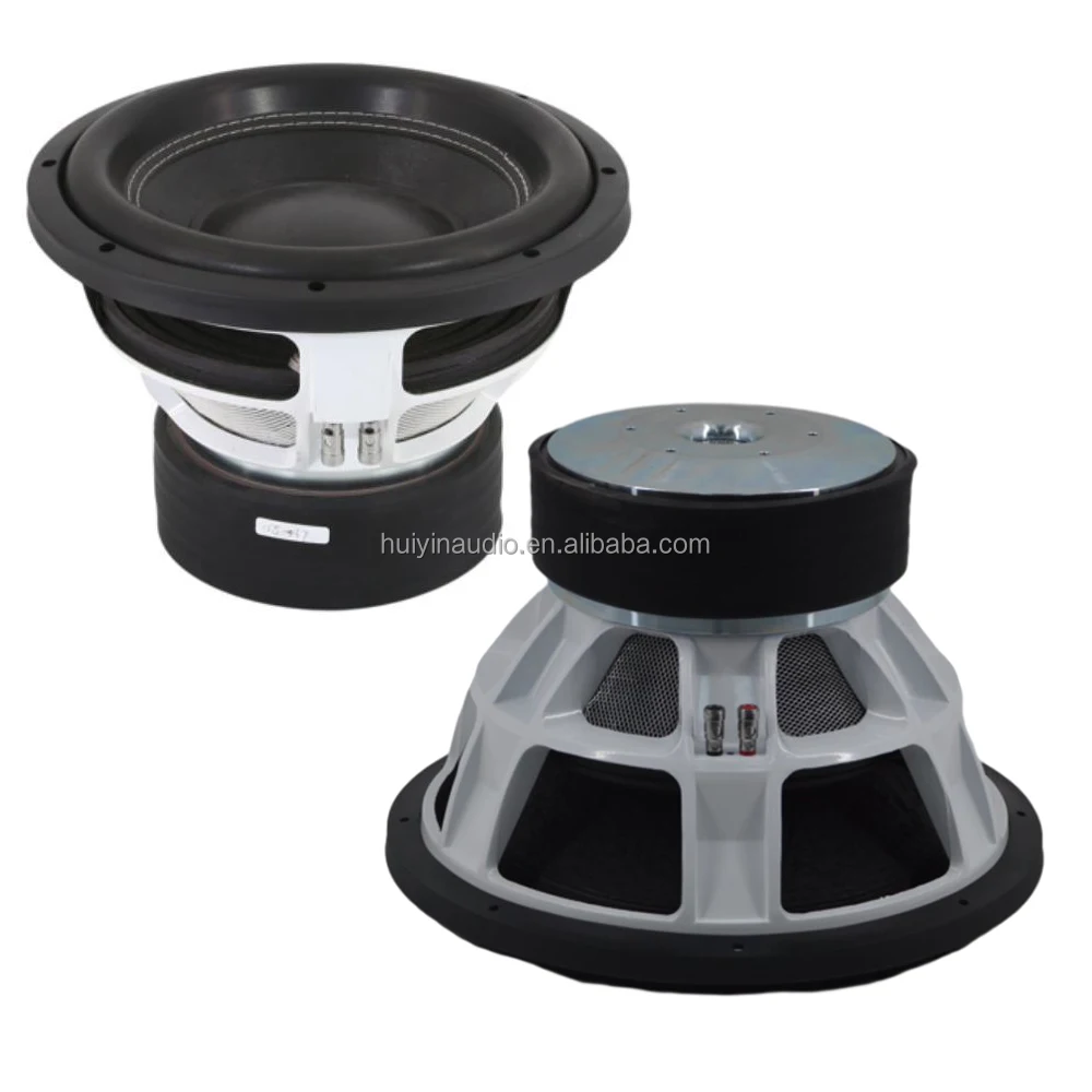 Loa siêu trầm kim loại màu trắng OEM 3000W RMS, loa siêu trầm ô tô điều khiển từ xa HYW-12100-010-H 12 inch